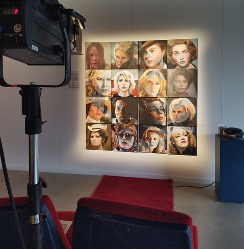 Schilderijen van actrices in films tussen 1930 en nu. Deels in kleur, deels in zwart/wit geschilderd. Het zwart-witte deel van het werk vormt een roos. Voor details ga naar "groepen en kunstwerken" kies portretten.